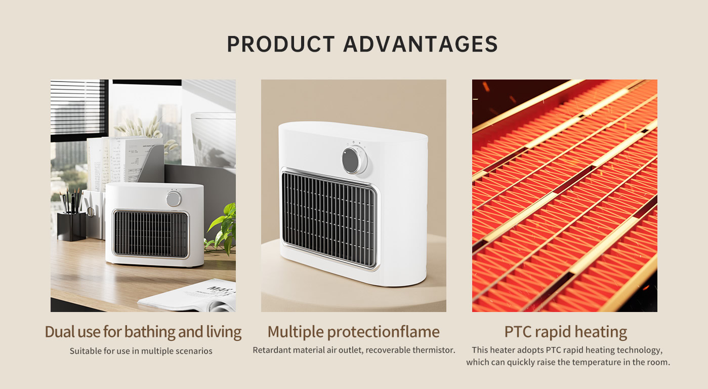 [Mechanical Model] 1500W PTC heating, three-level adjustment, hot and cold dual-use, knob mechanical model, instant heating, low-noise operation, flame-retardant materials.
