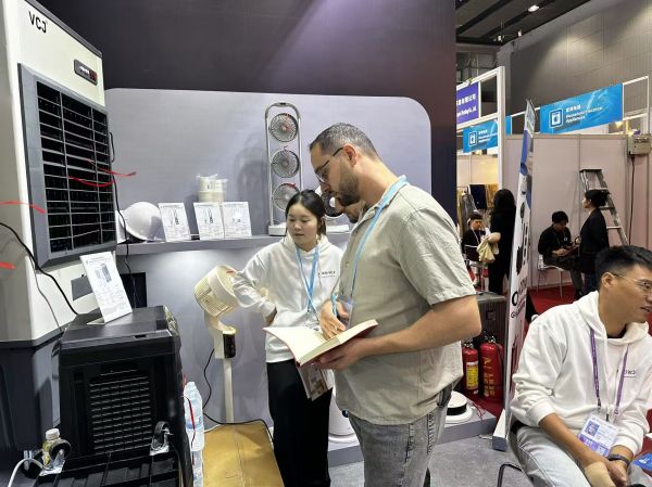 Merchants from various regions around the world, such as Europe, America, Southeast Asia and the Middle East, stopped by one after another. The detachable air cooler demonstrated on-site by the staff attracted continuous onlookers. This detachable water tank design can not only effectively reduce transportation volume and logistics costs, but also save space, making it more flexible and convenient for users. Most importantly, this air cooler is equipped with a DC rechargeable version, which can charge emergency equipment.