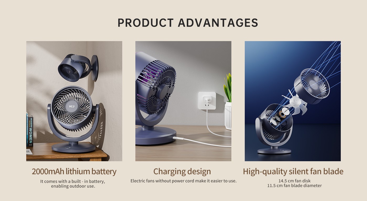 | Product features | Three-level wind speed adjustment, promotes spatial circulation, automatically changes wind direction, Travel carry, no power cord,Ambient light |